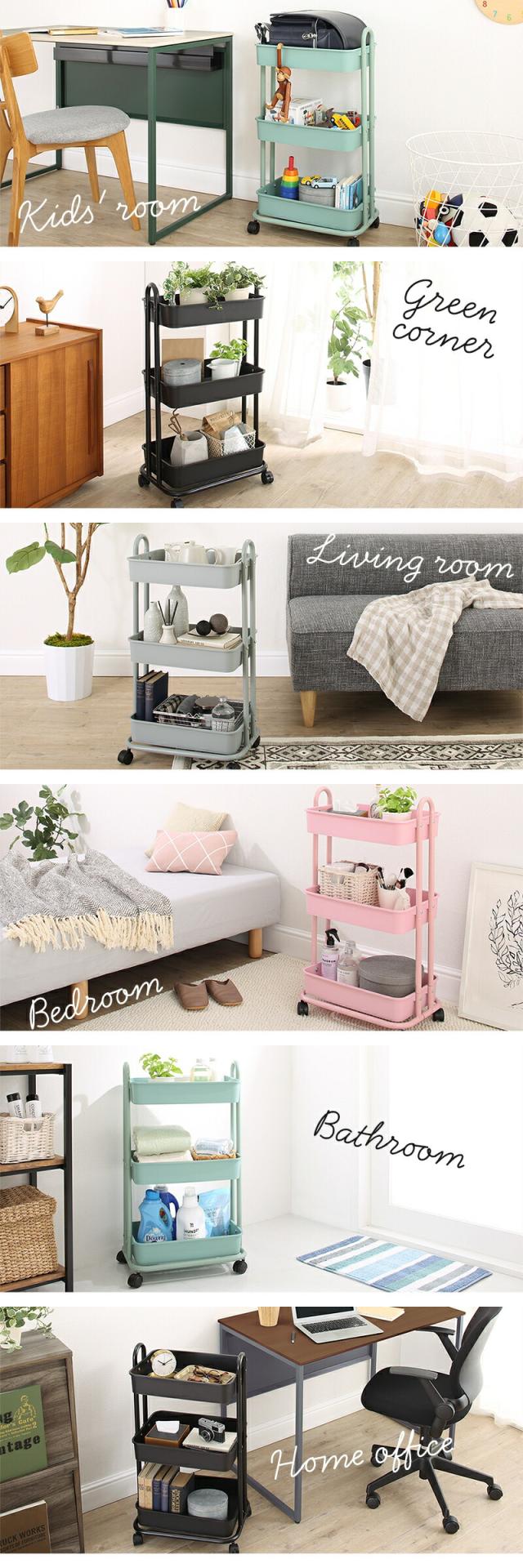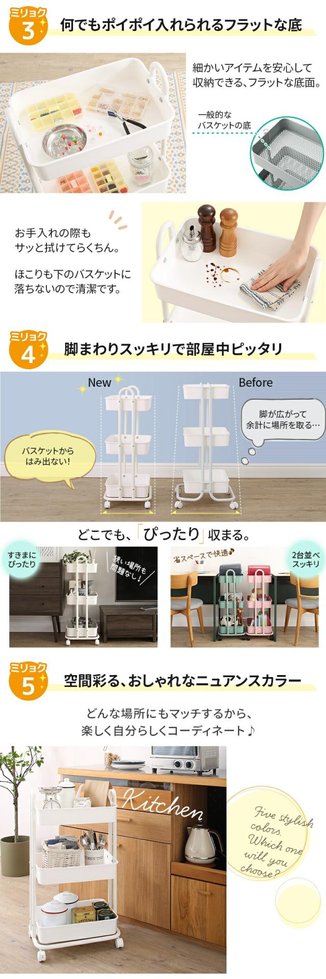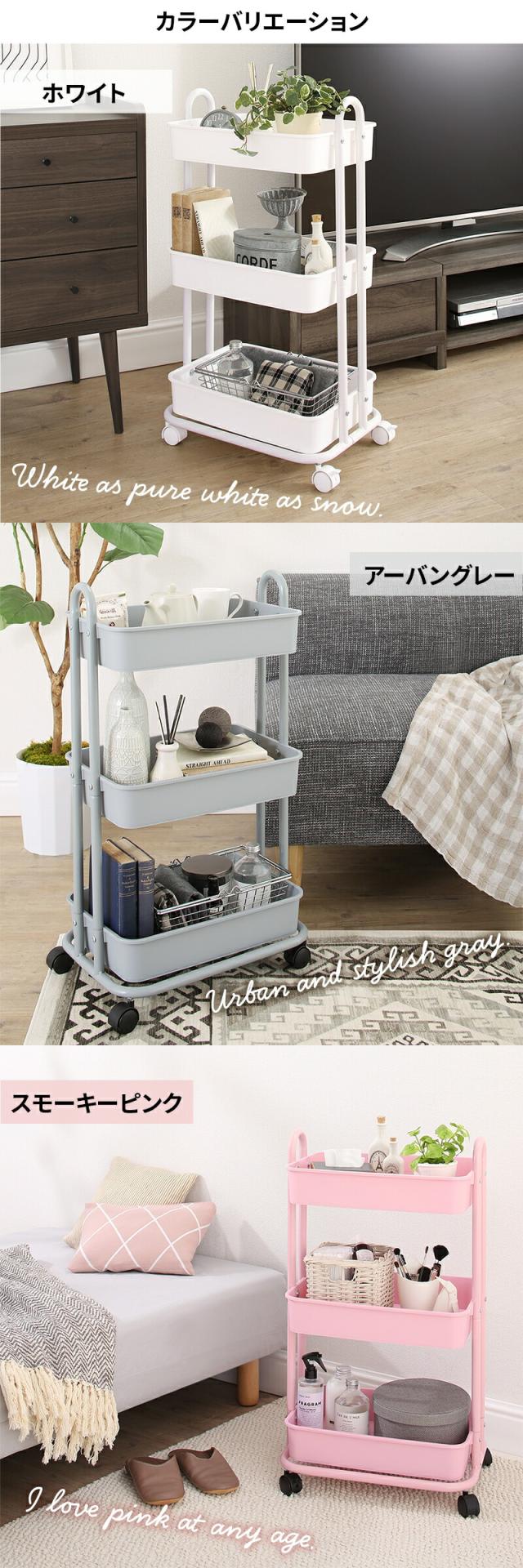 安心して何でも収納ができるバスケットワゴンです。