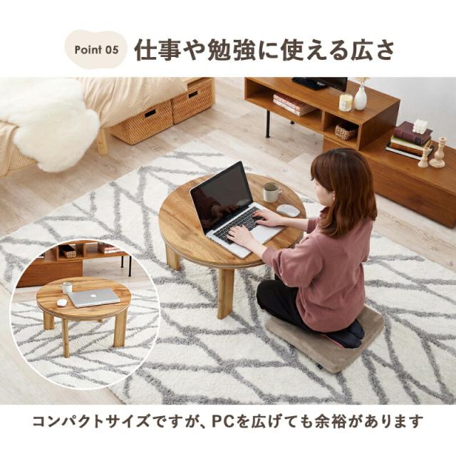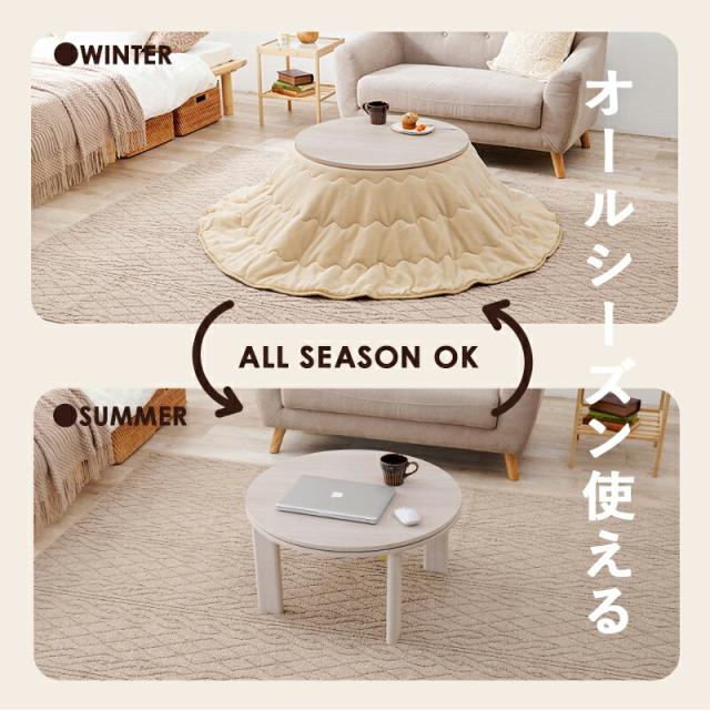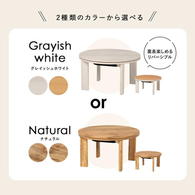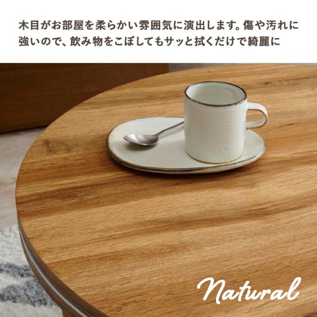 天板リバーシブル 円形折りたたみこたつテーブル 【モネ】 68×68cm ナチュラル