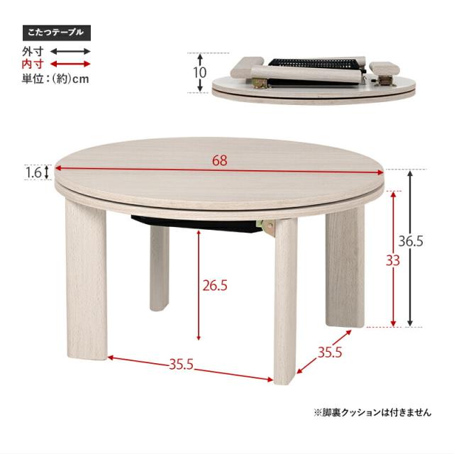 天板リバーシブル 円形折りたたみこたつテーブル 〔モネ〕 68×68cm ナチュラル 【北海道・沖縄・離島配送不可】