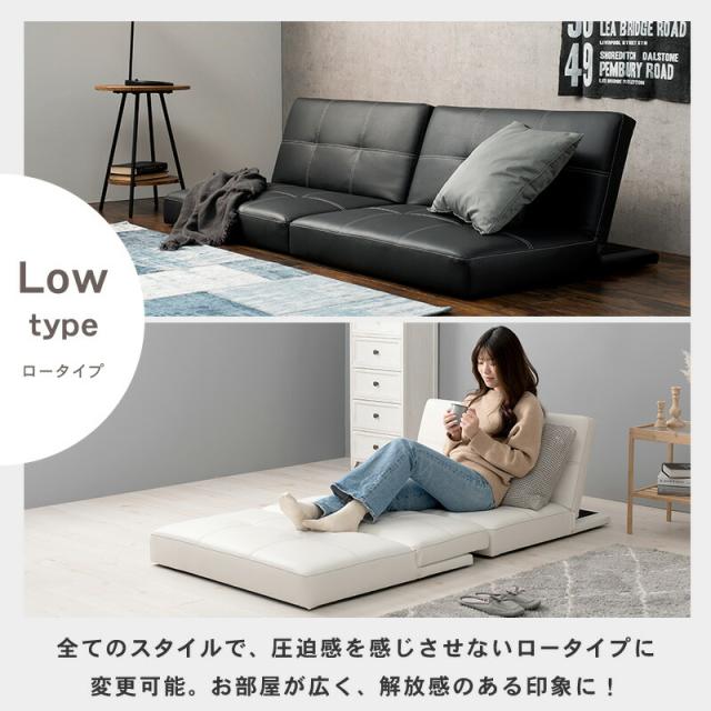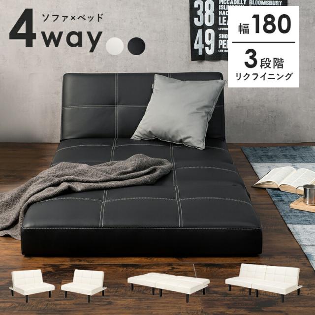 1台4役 1人暮らしソファベッド 3段階リクライニング 分割可能 幅180cm 〔ts120805〕 ブラック 【北海道・沖縄・離島配送不可】