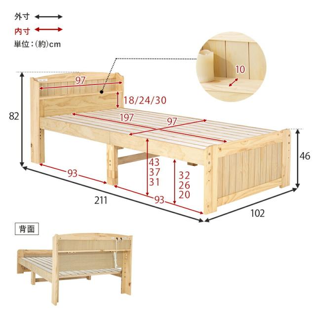 高さ3段階調節 カントリー調すのこベッド 〔ts120788〕 シングル ライトブラウン 【北海道・沖縄・離島配送不可】