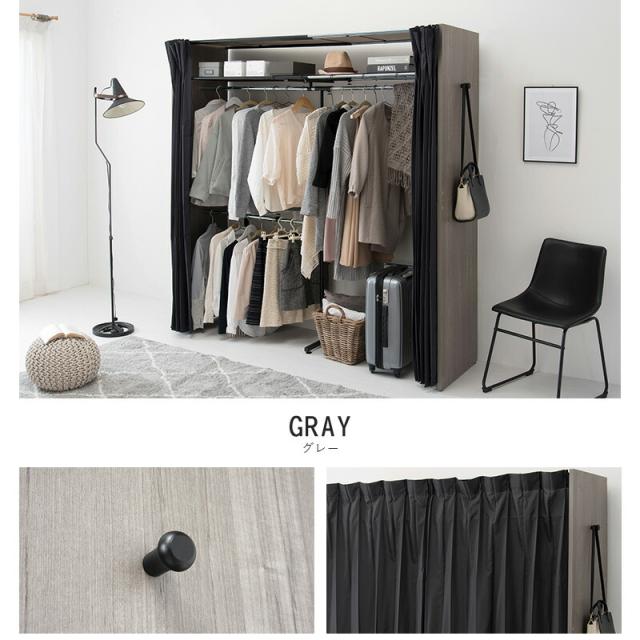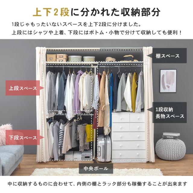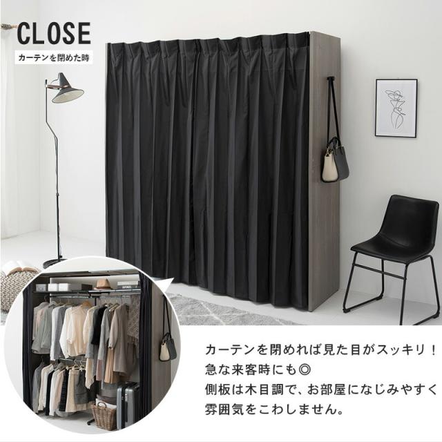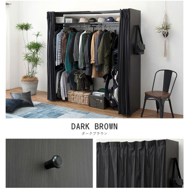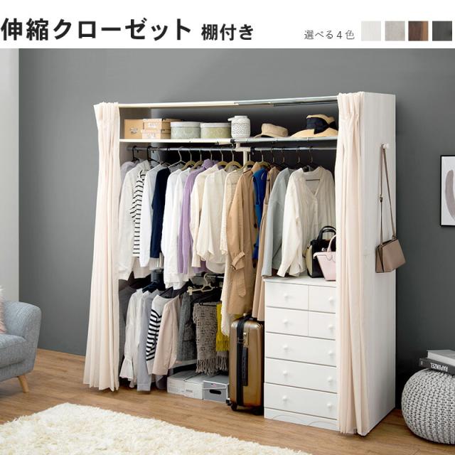 横幅伸縮クローゼット 棚付き 〔ts121071〕 幅118〜195cm ウォルナット 【北海道・沖縄・離島配送不可】