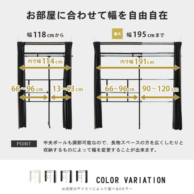 横幅伸縮クローゼット 棚付き 【ts121071】 幅118〜195cm ウォルナット
