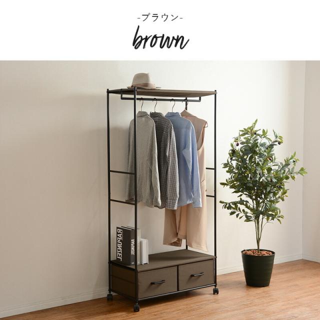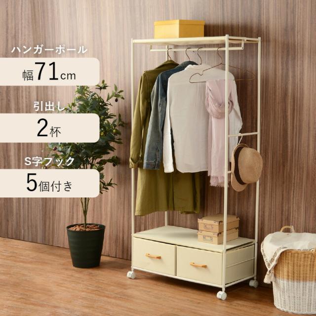 引き出し付きハンガーラック 〔ts120973〕 幅75cm 引き出し2杯付き 幅75cm ホワイト 【北海道・沖縄・離島配送不可】
