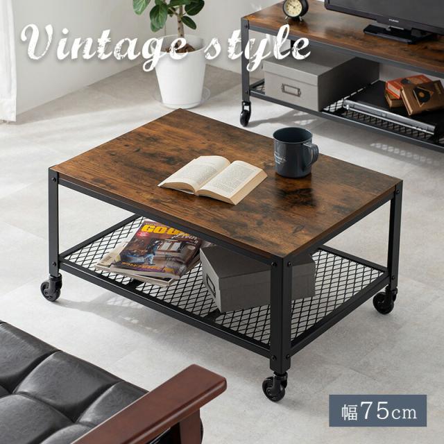 ヴィンテージ調キャスター付きテーブル 〔ts120903〕 幅75cm ダークブラウン 【北海道・沖縄・離島配送不可】