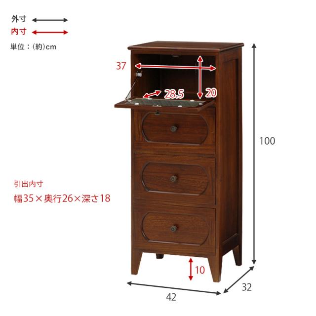レトロモダン家具シリーズ 〔レトロ〕 チェスト4段 幅42×高さ100cm ブラウン 【北海道・沖縄・離島配送不可】