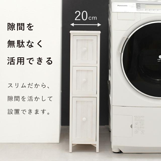 アンティーク風天然木隙間収納ラック 〔ts120877〕 幅20cm アンティークホワイト 【北海道・沖縄・離島配送不可】