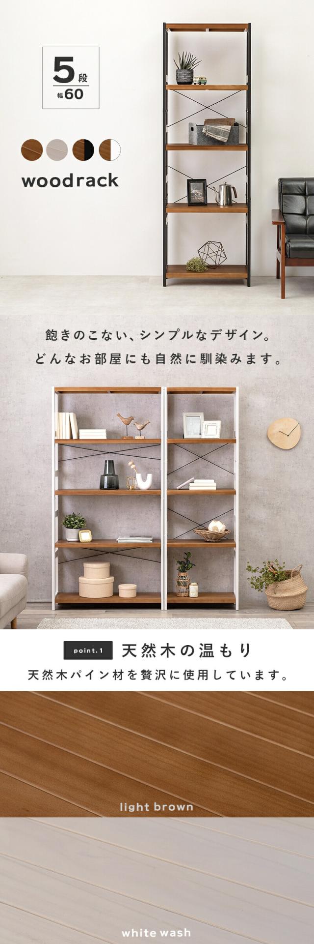 天然木使用 オープンラック 〔ts121010〕 5段 幅60cm×高さ180cm ダークグレー/ライトブラウン 【北海道・沖縄・離島配送不可】