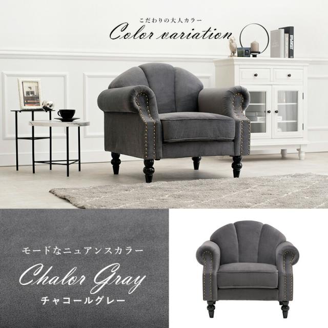 大人カワイイ プリンセスソファ 〔ルコ〕 1Pサイズ チャコールグレー 【北海道・沖縄・離島配送不可】