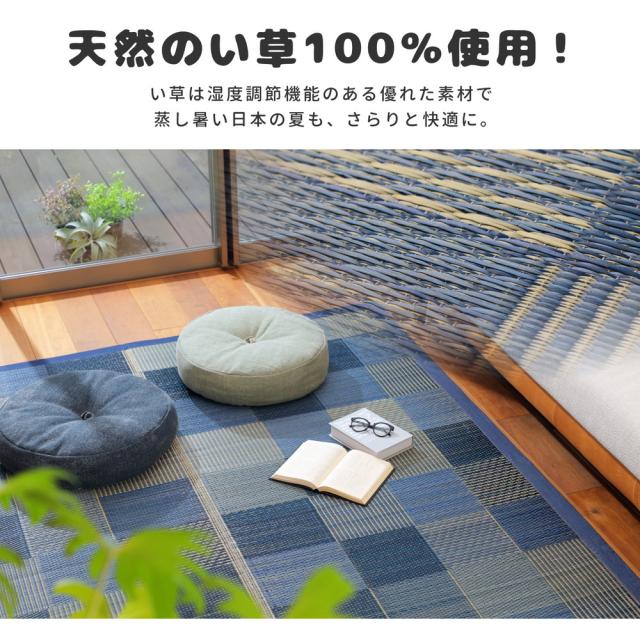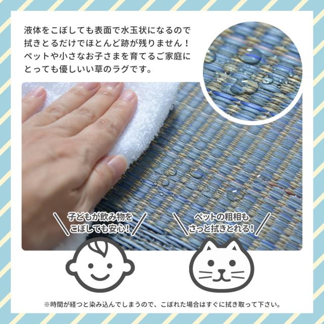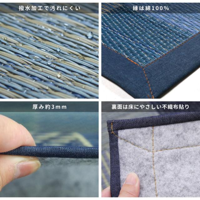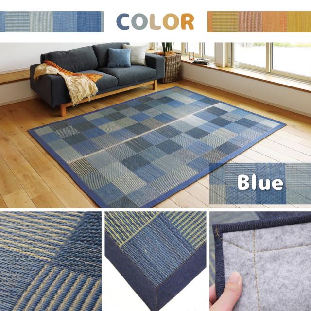い草ラグ 【デニムパッチ】 はっ水機能付き 176×176cm ブルー