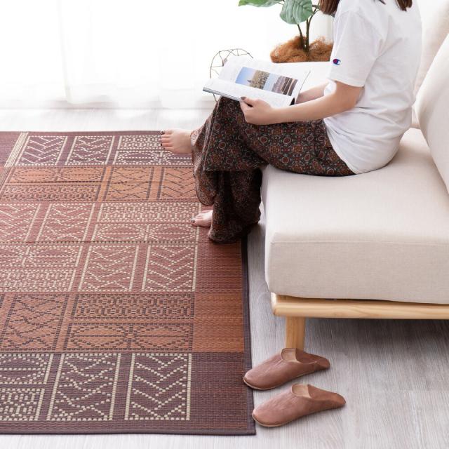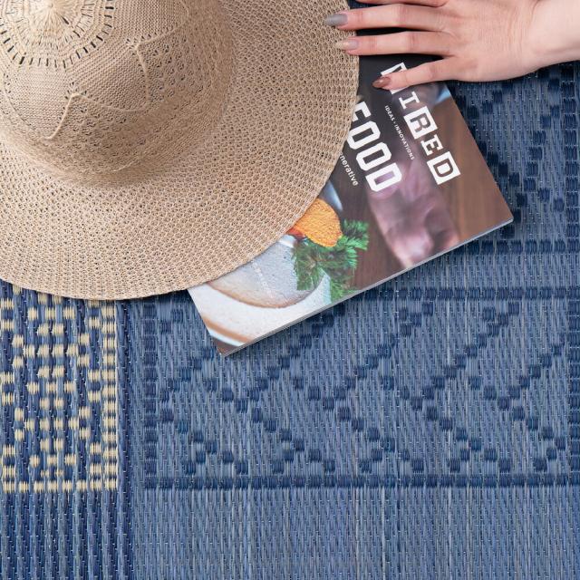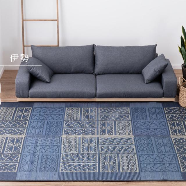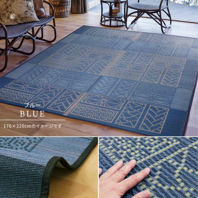 い草ラグ 〔伊勢〕 176×176cm ブルー 【北海道・沖縄・離島配送不可】