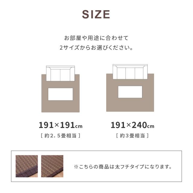 い草ラグ 〔南風〕 191×191cm ブラウン 【北海道・沖縄・離島配送不可】
