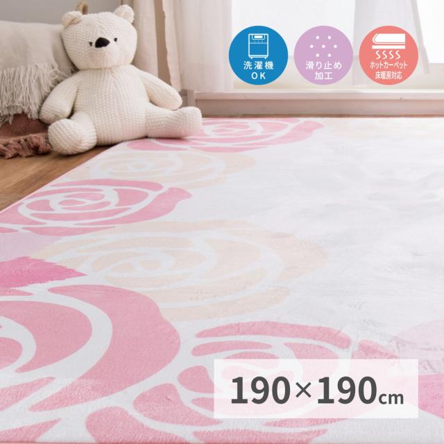 姫系ローズ柄ラグ 〔レネ2〕 190×190cm ピンク 【北海道・沖縄・離島配送不可】