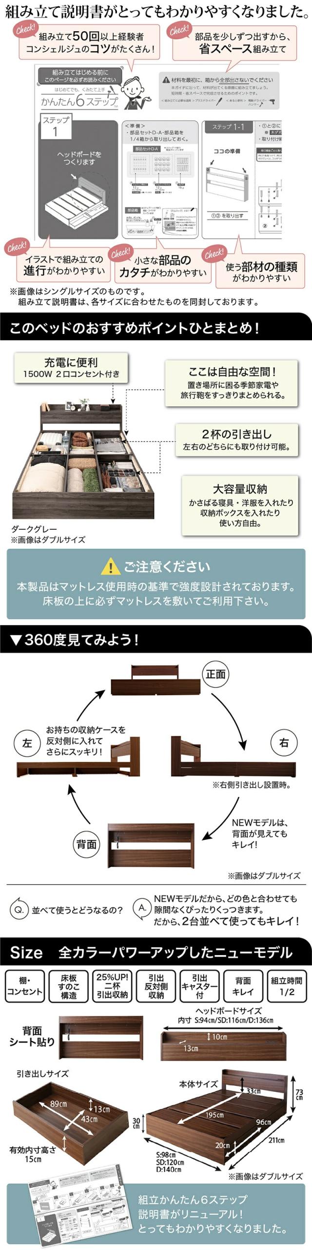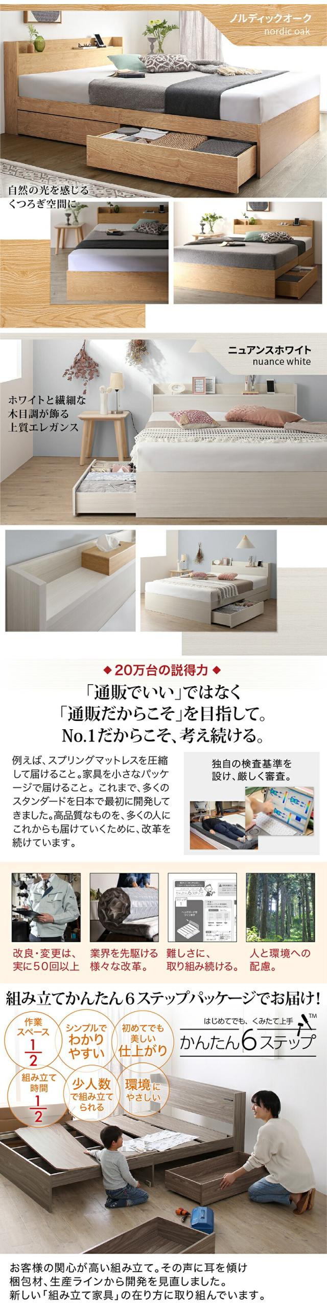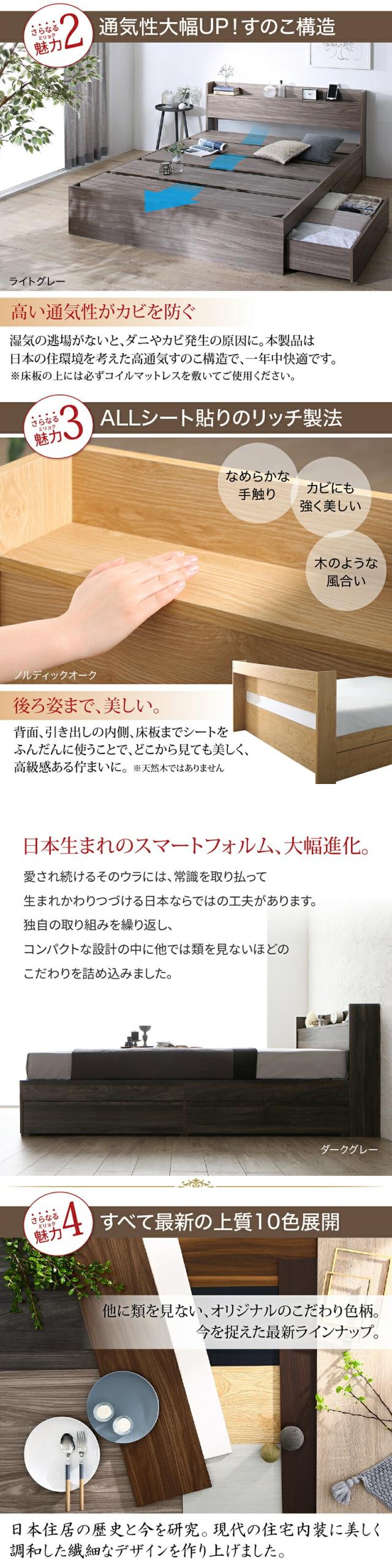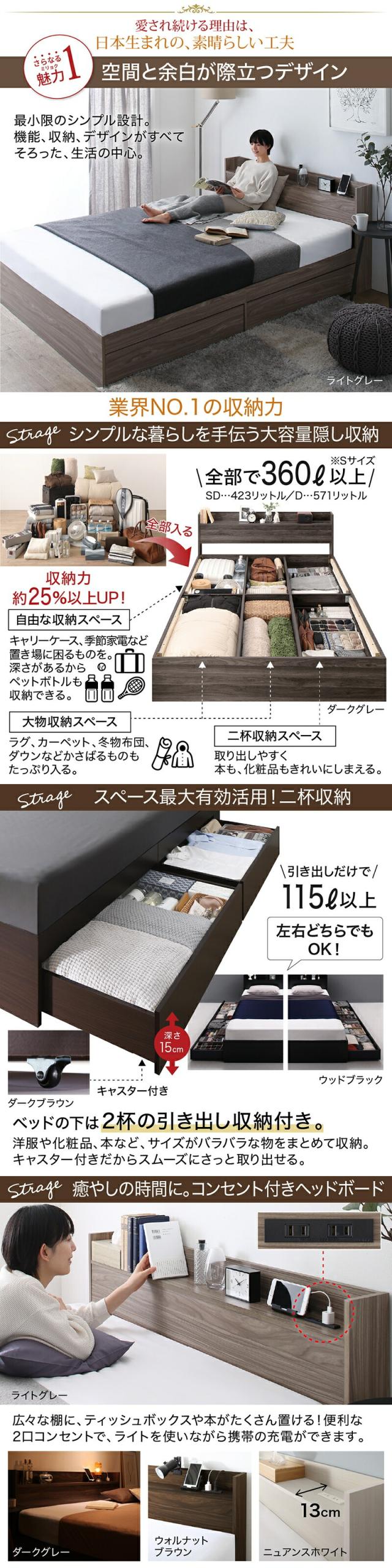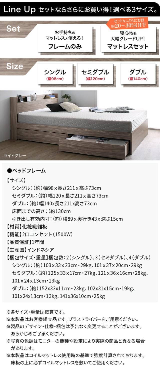 〔組立設置料込み〕棚・コンセント付き 引き出し収納ベッド 〔エヴァーX〕 〔ベッドフレームのみ・マットレスなし〕 セミダブル 〔フレーム色〕ライトグレー 【北海道・沖縄・離島配送不可】