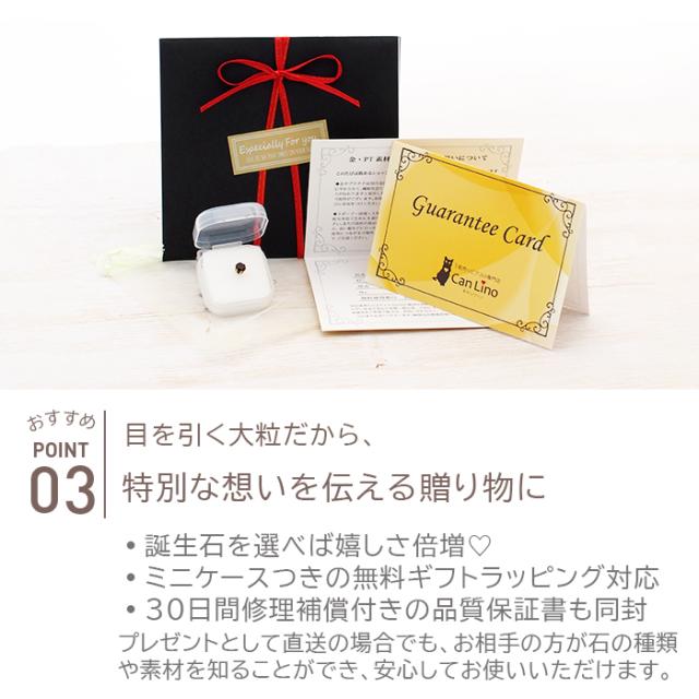 | ご注文1件につき、30日間無料修理補償付きの品質保証書を1枚同封 ※石の種類や金属の素材なども記載されているため、プレゼントで直送される場合でも、お相手の方が安心してお使いいただくことができます |