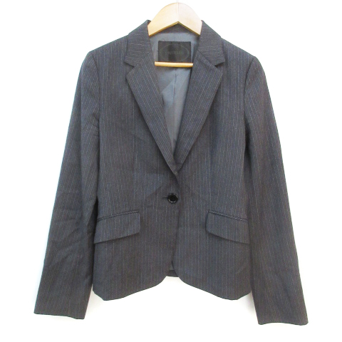 【中古】アンタイトル テーラードジャケット ミドル丈 ウール 総裏地 ストライプ柄 2 チャコールグレー 白 レディース