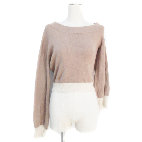 【中古】リゼクシー ニット セーター ショート丈 長袖 ボートネック アシンメトリー 無地 F モカベージュ レディース