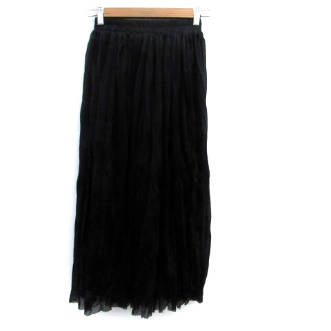 【中古】ドゥドゥ DOUDOU プリーツスカート ロング丈 ラメ 黒 ブラック /HO30 レディース