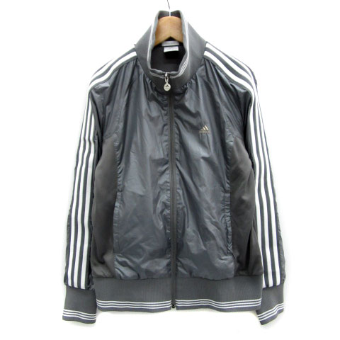 【中古】アディダス スタンドカラージャケット ブルゾンジャケット ミドル丈 ジップアップ M グレー レディース