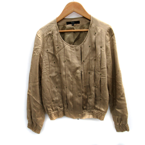 【中古】アナザーエディション アローズ ノーカラージャケット ミドル丈 スタッズ M ベージュ /SM23 レディース