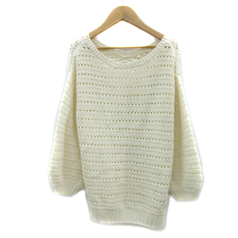【中古】スタディオクリップ ニット カットソー 長袖 かぎ編み オーバーサイズ M アイボリー レディース