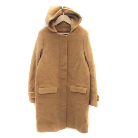 【中古】アパートバイローリーズ ノーカラーコート ロング丈 フード付き 2way ウール M 茶色 ブラウン レディース