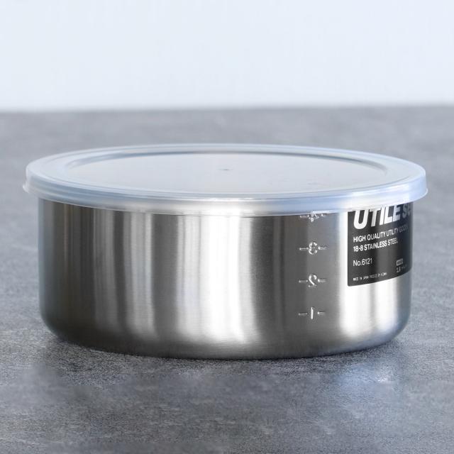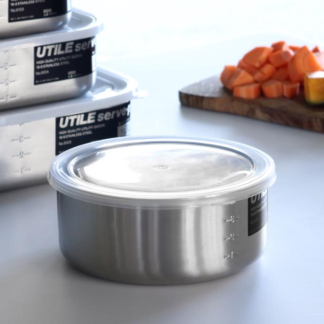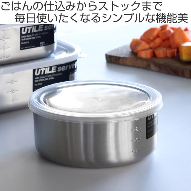 工房アイザワ 保存容器 1.3L UTILE 目盛付丸容器 LM ( aizawa 日本製 ステンレス 弁当箱 お弁当箱 目盛り 保存 容器 食品保存 丸型 ステンレス保存容器 下ごしらえ 作り置き おかず 便利 美しい 小分け アイザワ シンプル 1300ml )