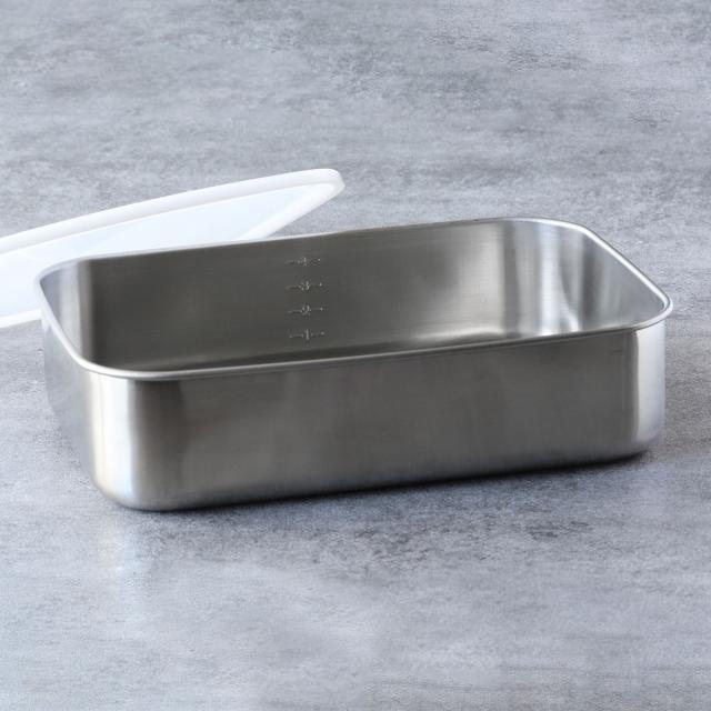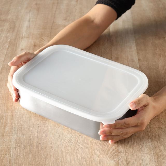 ステンレス製の容器は食材のにおい・色移りしにくいのが特長です。作り置きのおかずやカットした野菜の保存はもちろん、お肉や魚を漬け込むなどバット代わりとしてもお使いいただけます。