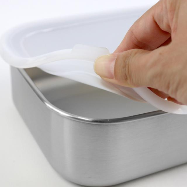 ニオイのある食材も安心して入れられる密閉蓋は、角につまみが付いており開けやすいです。ラップ要らずで扱いやすく、汁気のあるおかずも安心して保存できます。
