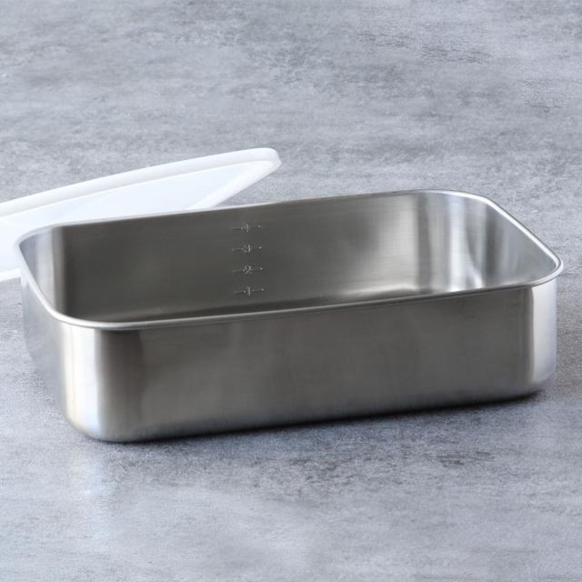 ステンレス製の容器は食材のにおい・色移りしにくいのが特長です。作り置きのおかずやカットした野菜の保存はもちろん、お肉や魚を漬け込むなどバット代わりとしてもお使いいただけます。