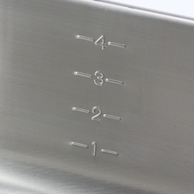 内側には、下ごしらえの目安にもなる見やすい目盛り付きです。