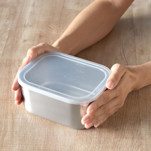 ステンレス製の容器は食材のにおい・色移りしにくいのが特長です。作り置きのおかずやカットした野菜の保存はもちろん、お肉や魚を漬け込むなどバット代わりとしてもお使いいただけます。