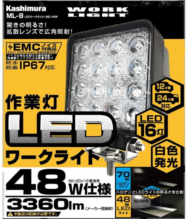 カシムラ LEDワークライト16灯 48W ML-8【送料無料】