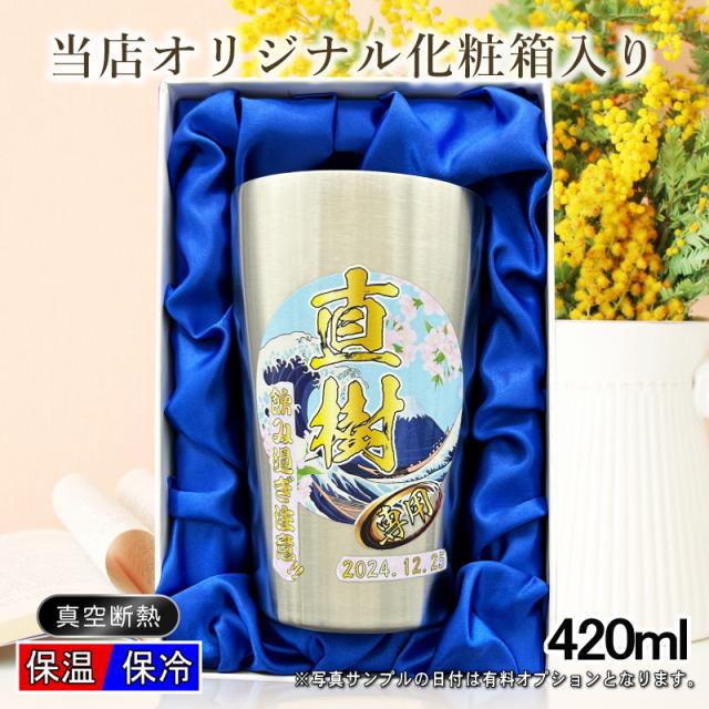 【化粧箱入り】 タンブラー 名入れ プレゼント 真空断熱 保温 保冷 ステンレス 名前入り プリント 印刷 グラス コップ おしゃれ ビールグラス 父の日 母の日 還暦祝い 退職 誕生日 結婚祝い カラー ネーム入れ 男性 女性 バースデー ギフト 背景/イラスト入り S420ml PI2