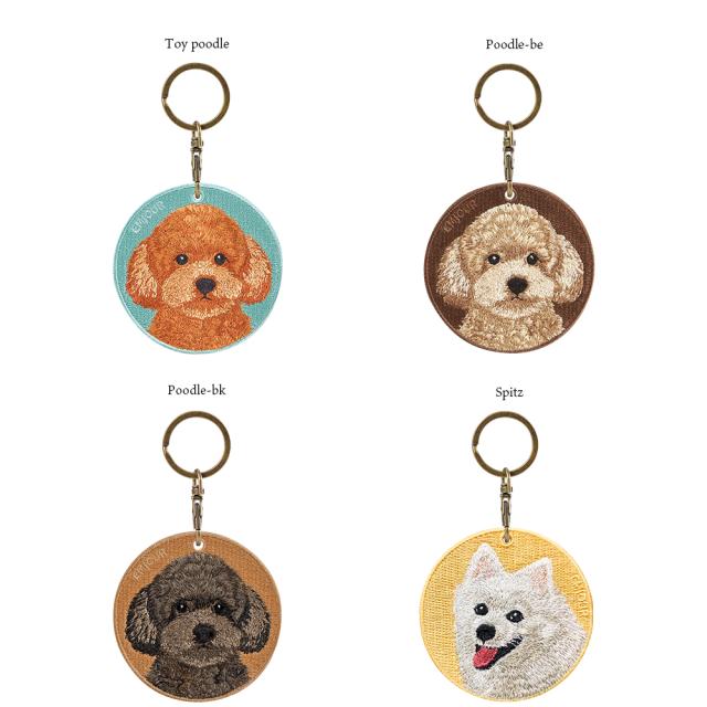 キーホルダー 犬 刺繍 ワッペン イヌ 犬柄 アニマル チャーム プードル トイプードル トイプ スピッツ ペット グッズ プレゼント ギフト 贈り物 新築祝い EMJOUR エンジュール 台湾 dog Taiwan 車 自転車 カギ 鍵 おしゃれ