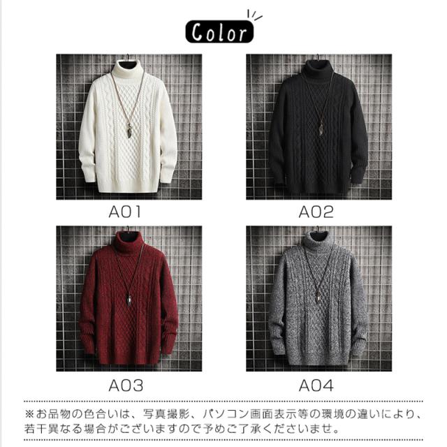 ニットセーター ニット メンズ トップス ハイネック プルオーバー セーター 長袖 ビジネスニット タートルネック ケーブル 防寒