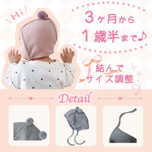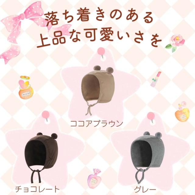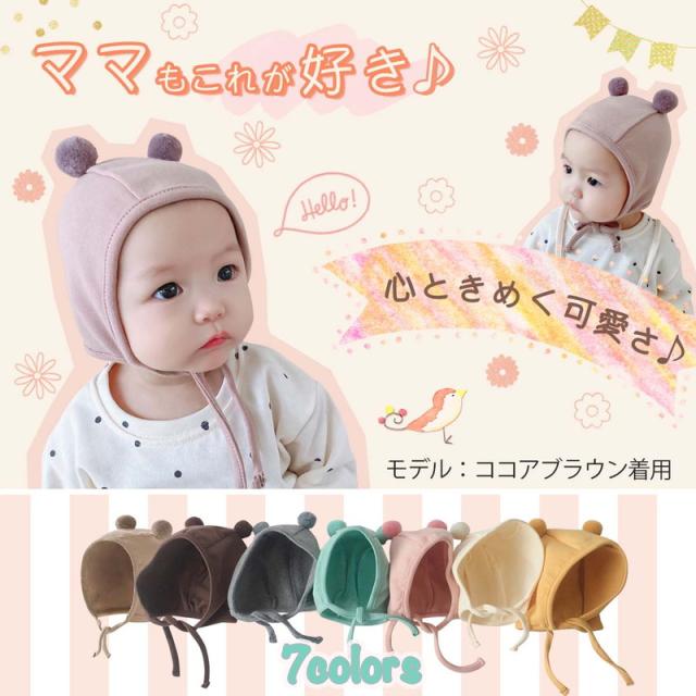 ベビー帽子 帽子 耳付き かわいい くま耳 赤ちゃん おしゃれ ぼうし 子供 ハット 保育園 3ヶ月〜18ヶ月(1歳半)対応 45〜49cm ギフト