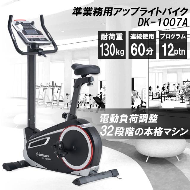 【予約 4月10日入荷】フィットネスバイク 準業務用 静音 電動 32段階調整 連続使用時間 60分 マグネット式負荷 アップライトバイク マット付 ダイコー DK-1007A