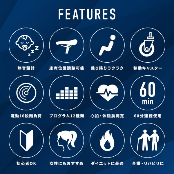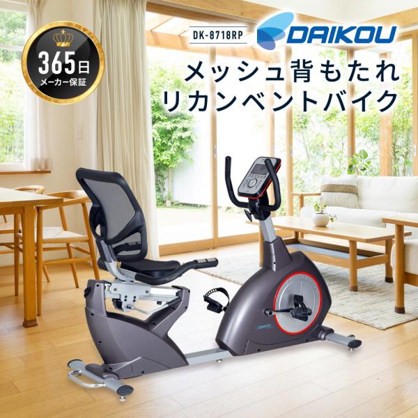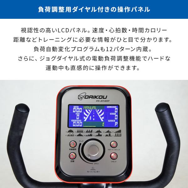 フィットネスバイク DK-8718RP 家庭用 高齢者 静音 電動 16段階調整 連続使用時間 60分 背もたれ付き マグネット式負荷 マット付