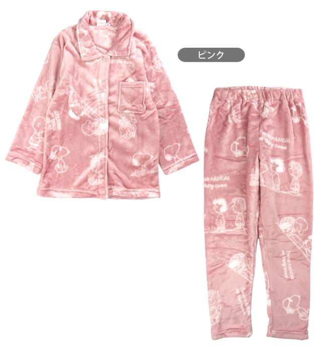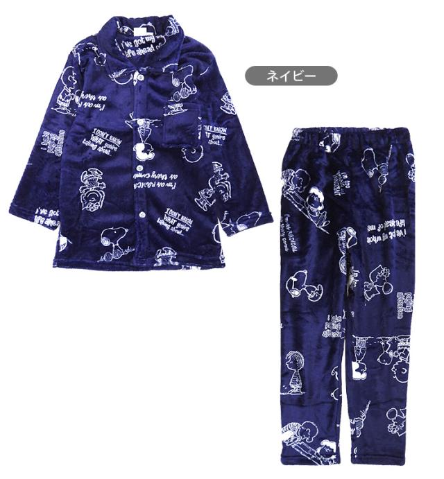 【送料無料】SNOOPY キッズ・ジュニア用フランネルパジャマ上下セットアップ 130 140 150 スヌーピー ルームウエア 開襟 襟付き No.9808