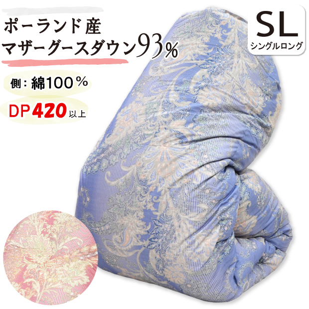 抗菌防臭加工無料 冬用 羽毛布団 ポーランド産 マザーグース ダウン93% シングルロング 150×210cm ロイヤルゴールドラベル ダウンパワー420 DP420 羽毛1.3kg入り 二層キルト ツインキルト 日本製 綿100% 掛け布団 羽毛掛け布団 羽毛 甲州羽毛布団
