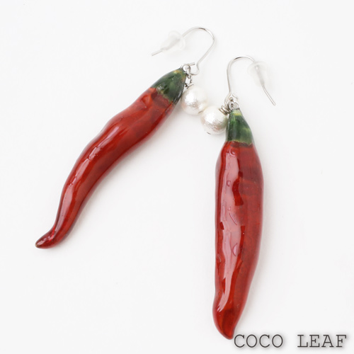 ピアス タカノツメ 鷹の爪 唐辛子 赤 緑 自然素材 カラー樹脂 真鍮 かわいい 個性的 パール コットンパール 贈り物 ギフト プレゼント レディース 天然素材 シンプル アクセサリー COCO LEAF