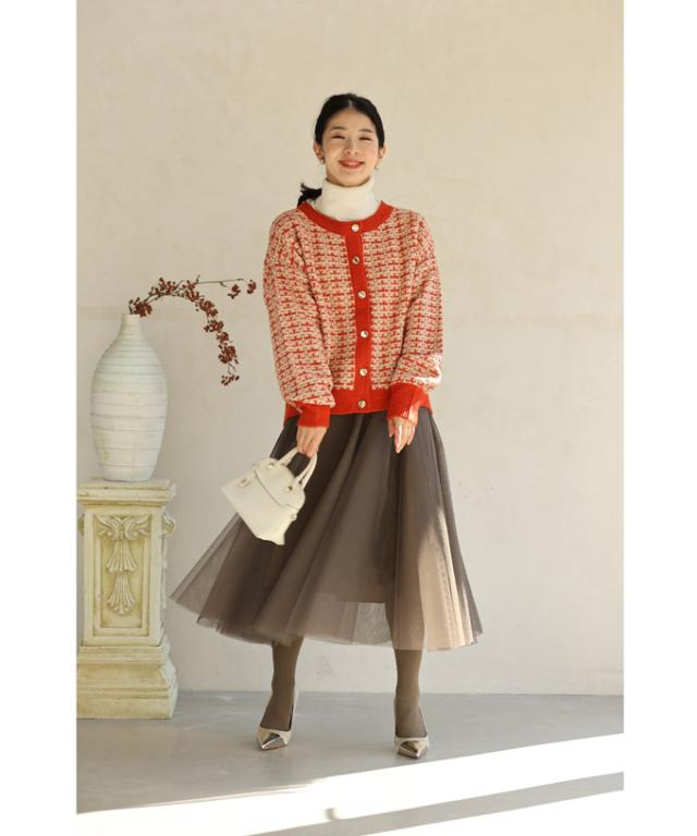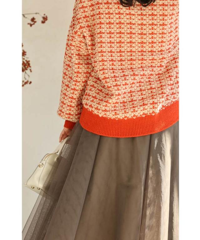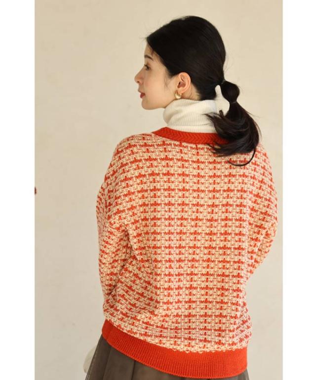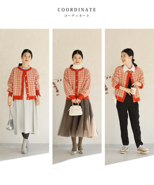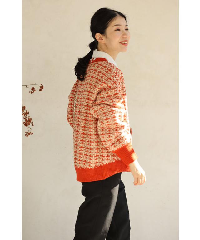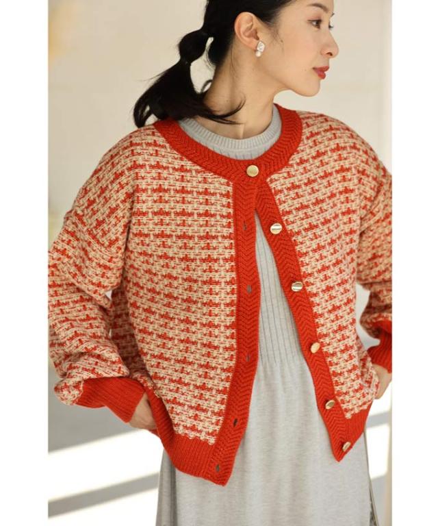 fbk00009od 新作 新着 再入荷 CAWAII FRENCHPAVE フレンチパヴェ エレガント ベーシック カジュアル 可愛い かわいい カワイイ おしゃれ オシャレ お洒落 個性 個性的 定番 ベーシック 大人かわいい 大人可愛い 上品 女性らしい デザイン スタンダード ナチュラル きれいめ キレイめ シンプル フェミニン レディース レディースファッション 大人 ママ ミセス 30代 40代 50代 60代 温かみある みかん色 ツイード風 チェック ニット カーディガン 羽織り ボタン留め 長袖 長そで ロング袖 S M L 2L LL XL 3L LLL XXL フリーサイズ フリー 小さめ 小さめサイズ小さい 小さいサイズ 低身長 痩せ ほっそり 小柄 細身 標準サイズ 大きめシルエット 大きい 大きめ ビッグシルエット ぽっちゃり F サイズ自由 あったかい あたたかい 暖かい ぬくい 春 秋 冬 秋服 秋物 冬服 冬物 日常着 普段着 日常使い オレンジ