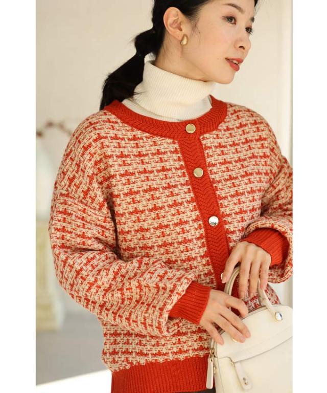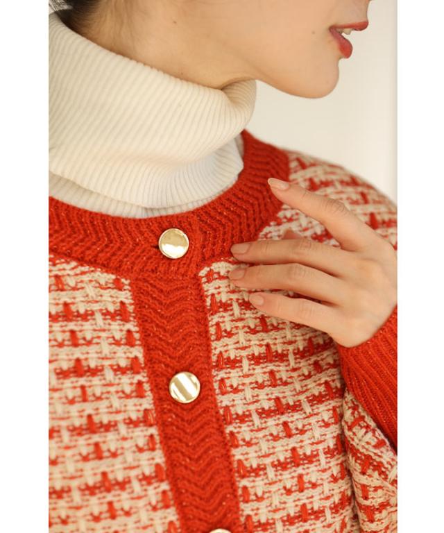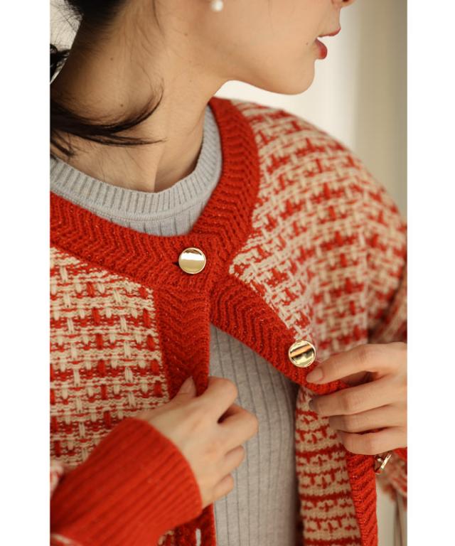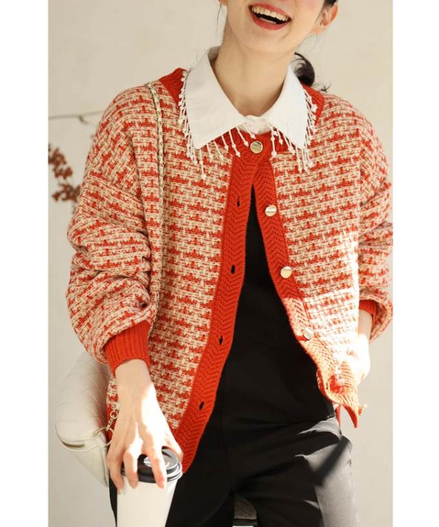 再入荷12月24日 温かみあるみかん色のツイード風チェックニットカーディガン トップス ニット カーディガン レディース ファッション 秋服 冬服 体型カバー cawaii fbk00009od S~3L対応 オレンジ ツイード 日常使い キレイめ シンプル ミセス 30代 40代 50代 母の日
