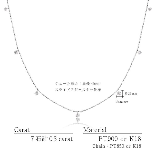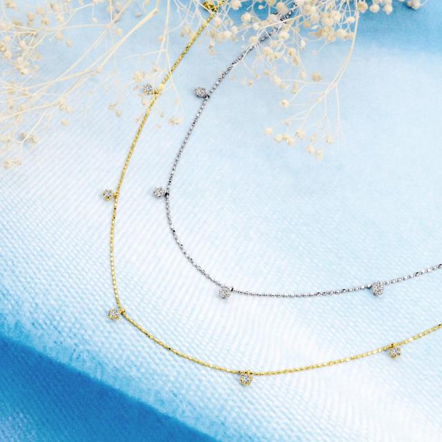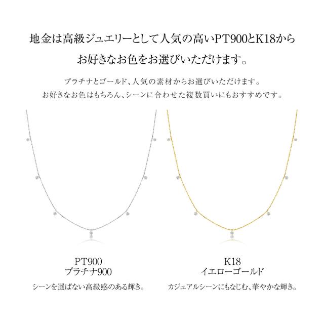 キラキラ輝くボールチェーンにステーション状に並ぶダイヤモンドが上品なネックレス。フォーマルからカジュアルまで、アクセントとしてお楽しみいただけます。