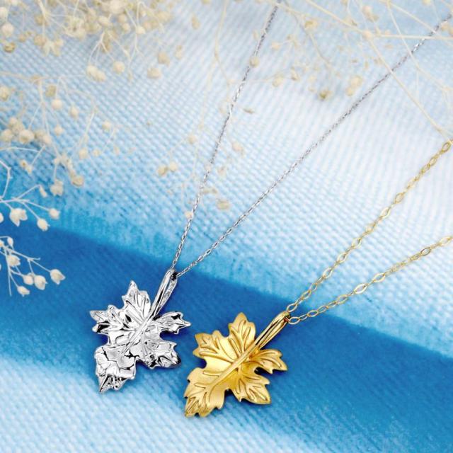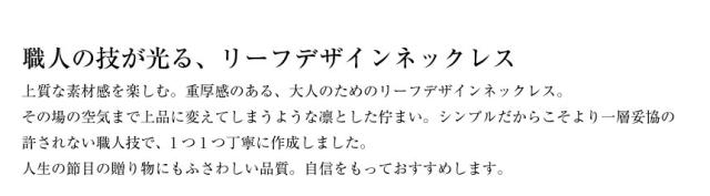 重厚感のあるリーフが印象的な、上品なネックレス。高品質素材を贅沢に使用した大人のためのデザインネックレスです。フォーマルからカジュアルまで、アクセントとしてお楽しみいただけます。