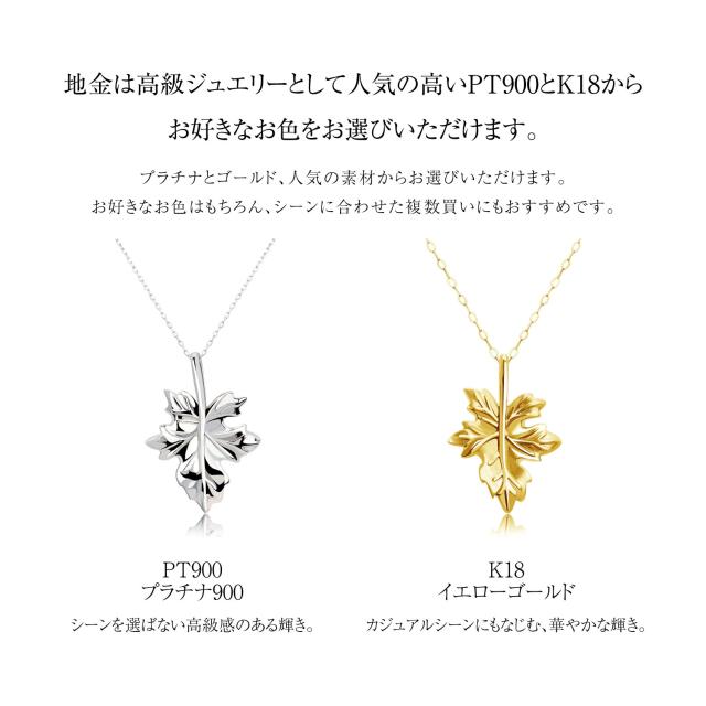 地金は人気の高いプラチナ(PT900)と18金イエローゴールドの2色からお好きな色をお選びいただけます。