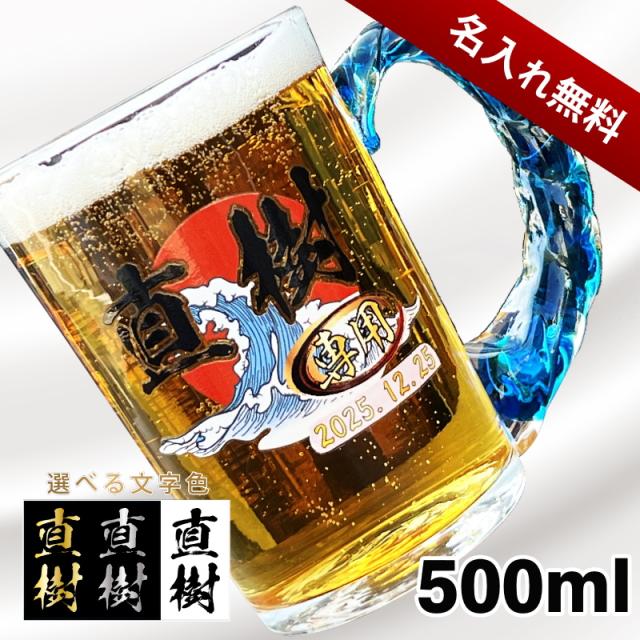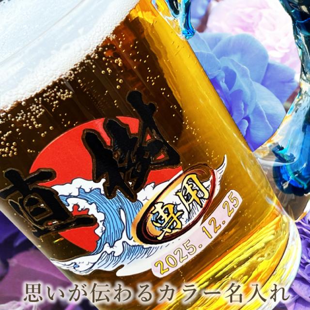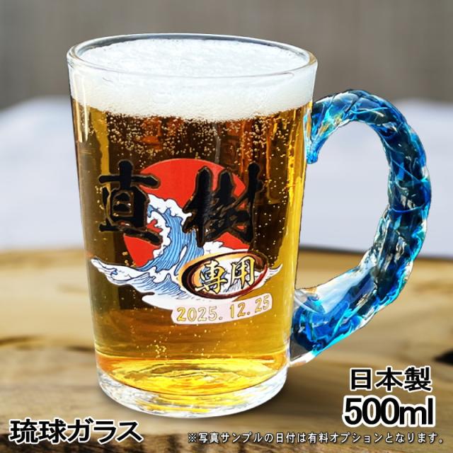ビールジョッキ 名入れ プレゼント 名前入り プリント 印刷 琉球ガラス グラス コップ ビアグラス 父の日 母の日 還暦祝い 退職 誕生日 結婚祝い 記念品 敬老の日 カラー ネーム入れ 男性 女性 バースデー ギフト ビアジョッキ ねじれ持ち手 500 ml 背景/イラスト入り PI45
