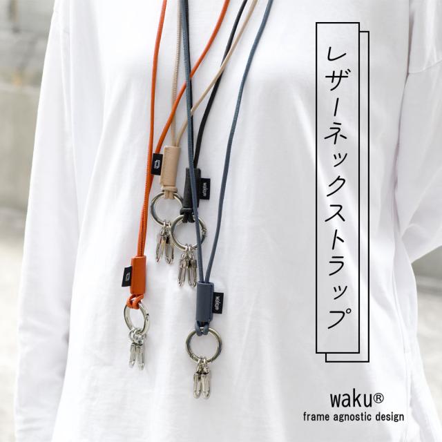 ネックストラップ キーリング waku ワク【メール便対応可】レザーネックストラップ 本革 レザー 革小物 革紐 ユニセックス 紐 ストラップ 鍵 スマートキー スマホショルダー ネックウォレット 財布 パスケース 首掛け 斜めがけ ブラック/ベージュ/オレンジ/ネイビー/グレー