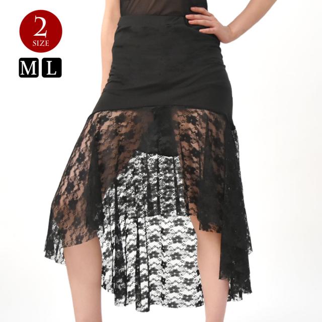 フリルレーススカート マーメイドスカート インナーパンツ付き V36P15 [M便 3/4] レース タイトスカート ダンススカート ダンス衣装 ラテンダンス 社交ダンス